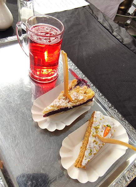 飲食屋台ももちろん大盛り上がりで(混み合いすぎてて写真はあまり撮れず)、食事の屋台だと時代に合わせたジビエ系が多くて鹿肉・猪肉のソーセージなどが多かったです。自分は軽食としてベイクドポテトとイースターのキャロットケーキを😋クランベリーと書いてあったソフトドリンクを頼んだらクランベリー・レモネードだそうでめちゃくちゃ美味しくて、後日スーパーで瓶入りのものを買ってみました。甘さ控えめで爽やか!🍷